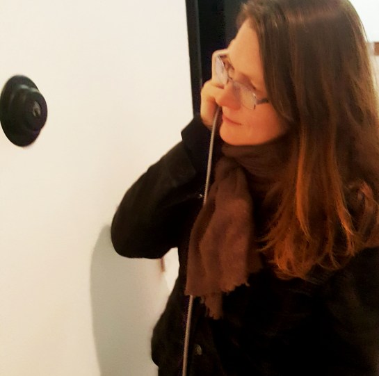 “Submitting to a voice”- me listening as part of an artwork at Liquid Architecture exhibition Eavesdropping at Ian Potter Museum of Art, Melbourne, August 2018